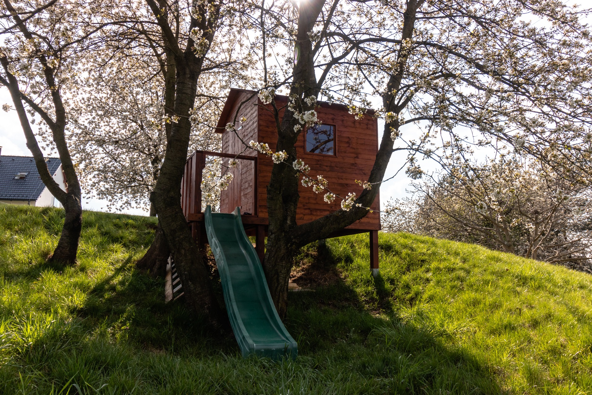 Poprvé jsem pozemek navštívila, když byl dům v závěrečné fázi stavby. Usazení domu bylo o více jak 1,5 m níže, než byla hlavní příjezdová cesta na pozemek. Mladá rodina tehdy čekala nový přírůstek do rodiny, proto byl mezi jejich základními požadavky i bezbariérový přístup k domu. Jako nejlepší propojení funkčního a estetického řešení se ukázala dvojice zídek a schodiště s podestou, které plní funkci hlavní komunikace do domu. Druhé propojení domu vytvořil pozvolně klesající chodník, který umožní pro průjezd kočárku, kola nebo odrážedla. Sjednocujícím materiálem opěrných prvků a zpevněných ploch je beton. Kvalitně zpracované betonové prvky působí jednotně a pomocí menších teras prostor nevytváří tísnivý pocit. Osázení v přírodním stylu technické prvky hezky zjemní a zapojí do zahrady.