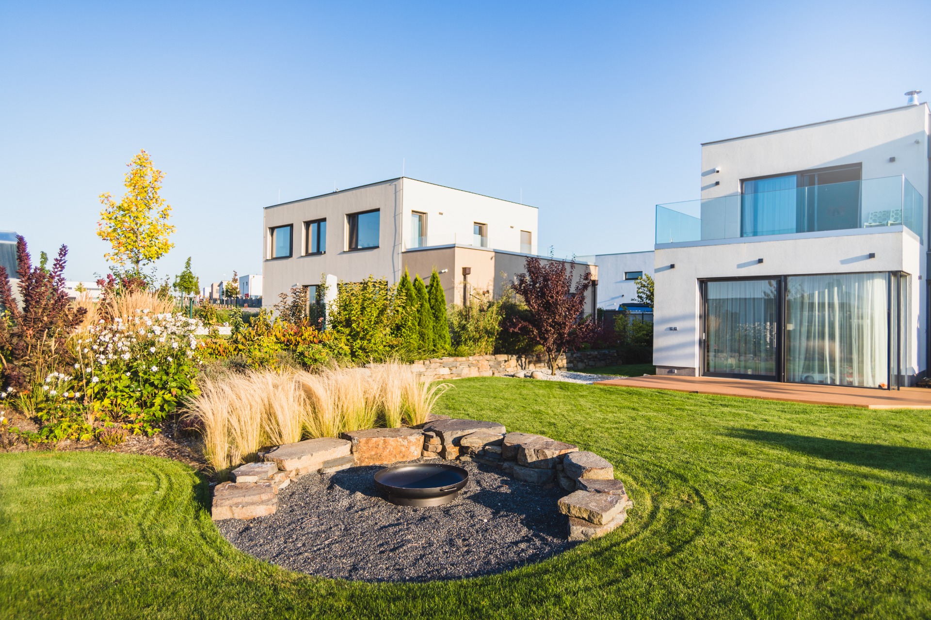 jezírkem, ohništěm a zahradním party domkem. Velký důraz kladli